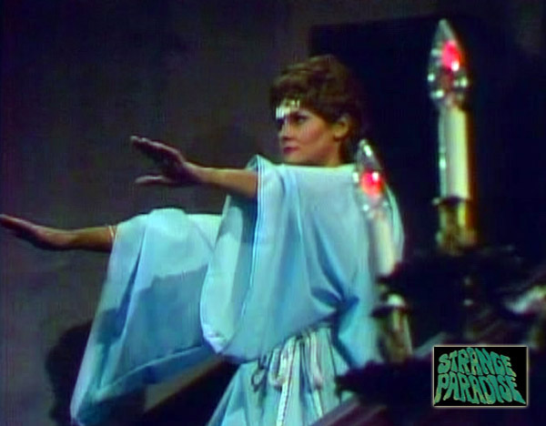 In the confusion, Jean Paul/Jacques disappears. Alison has the Reverend take Vangie upstairs while she gets a tranquilizer. Meanwhile, Jacques has descended to the lab, emerging from a secret room behind the medicine cabinet. He brings out Menkin’s missing notes and places them on the table for Alison to find. He then leaves.