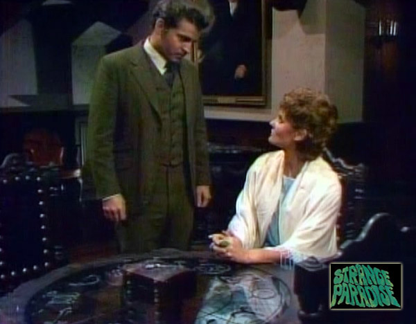 Vangie enters the main hall and tells the Reverend and Mrs. Marshall that she has refused to do another séance and will not entertain the invading spirit again. Mrs. Marshall wonders if there is some way they can make Jean Paul see clearly.