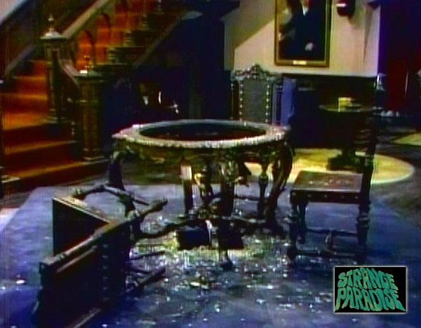 In the beginning of the episode, chandelier that fell into the middle of the seance table can be seen resting inside the table itself (image 2). This chandelier is not present in episode 36, which follows directly on from the chandelier's fall (image 1) |
