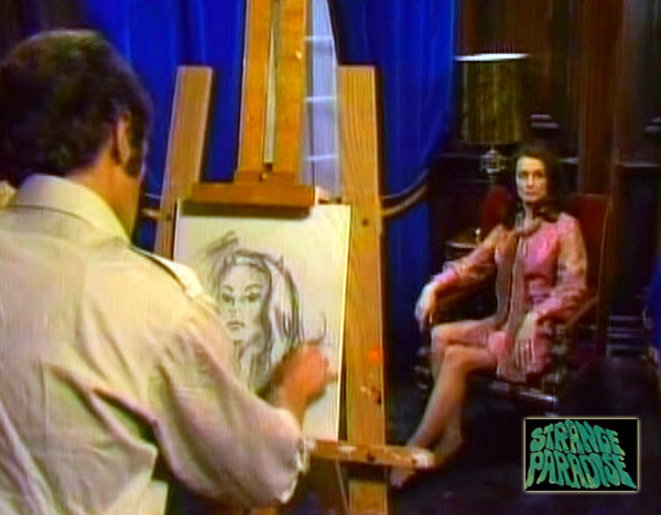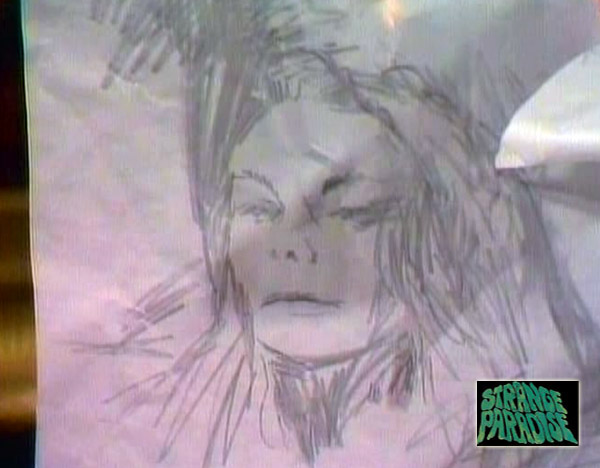 The first sketch Tim draws of Erica has small little horns on the top (image 1). The horns are missing on the sketch Tim shows to Erica (image 2). |
